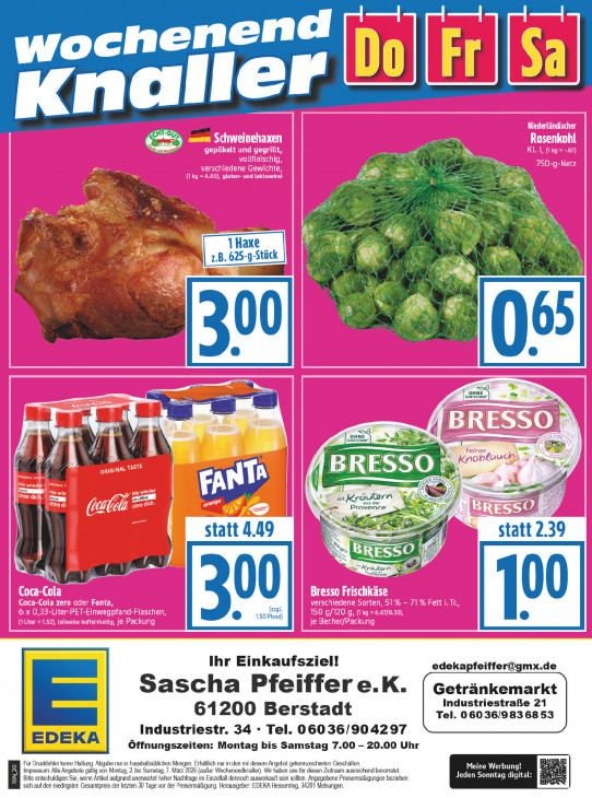 Bitte beachten Sie, dass dieser Text automatisch generiert wird und möglicherweise Fehler enthälte enend och „0 | [LL Kna eer EN u. ds À ® de 1 Haxe + 625 |) er > ns a os Ee el + Eu di à a ul BENTECHNN — 7 = == Gs + BRES Ee) EN De EEn (E mm I reen ln, = Der oe CA mit mr räute m Beva Ve m % ef statt 4.49 statt 2.39 4 2e B 7 Mk (zzgl. 30 50 Pfand) Ihr Einkaufsziel! [email protected] Sascha Pfeiffer e.K Getränkemarkt Industriestraße 21 61200 Berstadt Tel. 060 36/983 68 53 Industriestr. 34 - Tel. 06036/904297 Öffnungszeiten: Montag bis Samstag 7.00 - 20.00 Uhr Für Druckfehler keine Haflung. Abgabe nur in haushallsüblichen Mengen. Erhältlich nur in den mit diesem Angebot gekennzeichneten Geschäften. Meine Werbu Impressum: Alle Angebote gültig von Montag, 2. bis Samstag, 7. März 2026 (außer Wochenendkraller). Wir haben uns für diesen Zeitraum ausreichend bevorratet Bitte entschuldigen Sie, wenn Artikel aufgrund unerwartet hoher Nachfrage im Einzelfall dennoch ausverkauft sein sollten. Angegebene Preisermäßigungen beziehen Jeden Sonntag sich auf den niedrigsten Gesamtpreis der letzten 30 Tage vor der Preisermäßigurg. Herausgeber: EDEKA Hessenring, 34201 Melsungen.