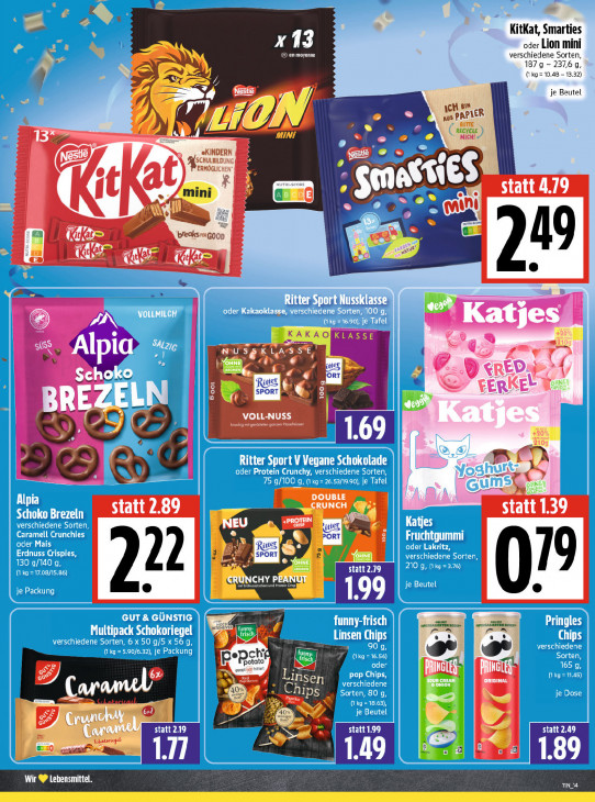 Bitte beachten Sie, dass dieser Text automatisch generiert wird und möglicherweise Fehler enthältKitKat, Smarties Par ® enmoyenne verschiedene Sorten oder Lion mini 187 9 - 237,6 9 (I kg = 10.48 - 13.32) nen je Beutel BIN Bi Lk 2 I) iR PAPIER MINI _ MICH! «KINDERN CHULBLDUN te ERMÖGLICHE A es statt 4.79 mini =: : Ar (Den A E Kai in D ar ne Wr ar a Ad A KLE ENT ES Ill GA Katie [KAKAO KLASSE br) N IC KL 3 ern a À. Alp LEUR | Se + Ey ef ue: ORT 2 2 De ED + {, Sch me ve À | E SPORT LA EERK BR —— LPO EEE VOLL-NUSS +, ) L 20 a € PA: er, Elaa DOUBLE A statt 2.89 RUNCH statt 1.39 coKo Brezein NEU PORT A it El Eus ter CS Fruchtgummi Ei PORT 5 statt 2.19 [CRUNCHY P ES Pr ES 1199 GUT & GUNSTIG Je held ll moraasi En Boze wenn jo Y ı (7 2 pen a ya DATE Linsen Chips ut & rg D B Pae Lu d 1 CD LD Insen HILLS Caramıl à 1pS Krunen Ki u TR un sta an < statt 2.49 IN 2 Caf pi [} 49 1.89 Wir ® Lehensmittel TINA