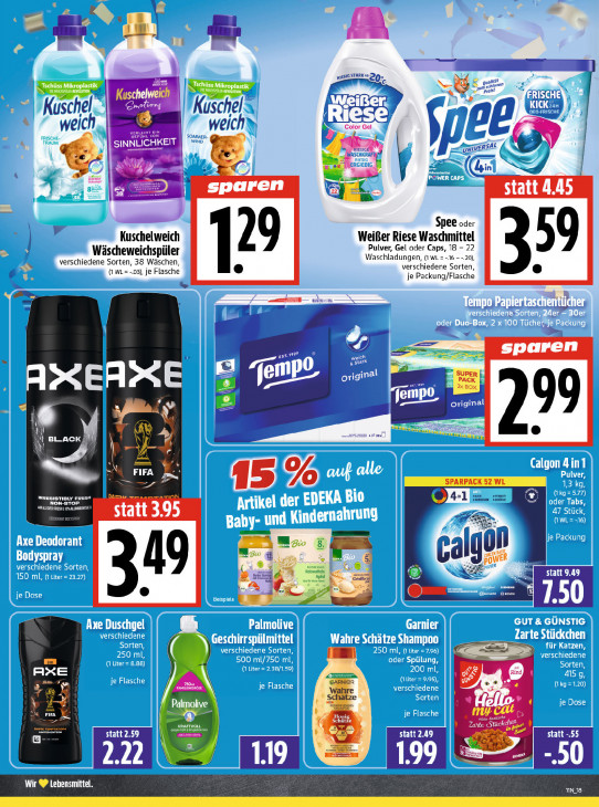 Bitte beachten Sie, dass dieser Text automatisch generiert wird und möglicherweise Fehler enthält= a be EN " fl > Tschüss Mikroplastik EU CT MW LA Kuschel Kuschel welt weich Fr Gi y= $ Je pt tn 22) sparen statt 4.45 Spee oder Kuschelweich Weißer Riese Waschmittel Wäscheweichspüler Pulver, Gel oder Caps, 18 - 22 verschiedene Sorten, 38 Wäschen Waschladungen, (1 wL = -.16 - -.20), x (1 WL= -.03), je Flasche verschiedene Sorten je Packung/Flasche > Rn Cv" sparen © AXEASE = M N || Pres 2 = ij il Ÿ | 4 GTR 2 EP 155% Din A2 ins CES ENEN CNE statt 3.95 zo mz CO or fi RL EEn una | cal { po! iswatleln. Apid | Ec a LR re | | © ik AXE DIS RS © ” 5 | Palmolive zr FIFA am 2 je} DNB Dt PA KS) Fi S | «a I E K ko NR Na: