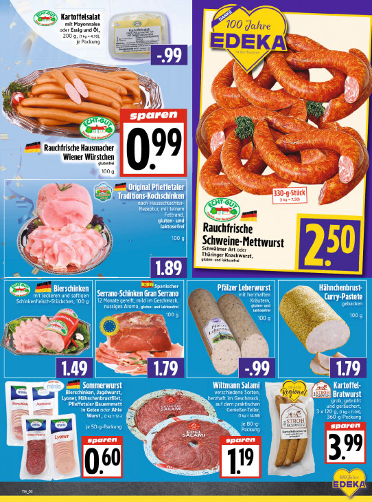 Bitte beachten Sie, dass dieser Text automatisch generiert wird und möglicherweise Fehler enthältme Kartoffelsalat SG gnd wor > ai mit Mayonnaise Kartoffelsalat 100 Jahre oder Essig und Öl, mit Sal 200 g, (1kg=4.95) je Packung ED EKA 16 — 5 SE {1} a SS hi ER € We \ Pu N N sparen Ir Is Su Luna id 4 \ 2 Rauchfrische Hausmacher Wiener Würstchen v7 glutenfrei 23 de 100g Ne we > Bj, ginal Pfieffetaler 330 tück Te — - [ci a le De LE nr x = Le a ‚und murs zn 4 Rauchfrische ie x Schweine-Mettwurst Schwälmer Art oder Thüringer Knackwurst, AAN gluten- und laktosefrei ER = IK ad ne LLC aus alla Curry-Pastete ebacken Re wu, ET UT ax we À (Lors IT Pau Wr de 1.5 Phn er GES N er Zen Ze “ es an el Se RECHT Gur in Wiltmann Salami ‚ei 1 (Ona, 5 SCHWEIN | Ef A Bierschinke Jagdwurst FOUR == — EAM en pe ST RO KE ©) g É ES | sparen je SU-g-Fackung as) st sommerwurst = sparen De sparen 100 Jah | E DEKA