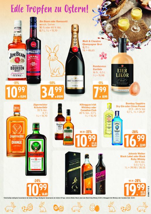 Bitte beachten Sie, dass dieser Text automatisch generiert wird und möglicherweise Fehler enthält4 ZR, Si, Edle Tropfen zu Ostern! … Jim Beam oder Ramazotti j pr 4 versch. Sorten N % oder 40 % Vol. OMR 1570 es » PEN Moët & Chandon os Ed 5 Champagner Brut DO 0,75 L ER var 1L= 46,65 leve ej IN] Je Bea, mi RENTE SAIGAE Rendezvous & WHISKEY: Eierlikör 16%,0,5L EIER zn 1L= 15,98 2 NOT & CHANDON a ni D mreRIaı Jägermeister Kilbeggan Irish Bombay Sapphire Kräuterlikör Whiskey oder Dry Gin oder Citron Press& 5 % Vol. Canadian Club 37,5 - 40 % Vol 0,7 L,1L = 24,27 0,7 L 40 % Vol, 0,7 L ne 1L=15,70 1L=15,70 pue I en N se 18; Ya ui jr ( 3 i Bıszu -35% an 26% NH ET 99 | BISZU ORANGE | Di 0” : Johnnie Walker I Black Label oder Black we Ruby Whisky A 40 % Vol. Ro PA 0,5/0,7L 1L = 39,98 / 28,55 Er ee NS SN 24% Biszu -28% 99 1 9 BISZU a +19 0 299 EIMX EE-3 "Gleichzeitig niedrigster Gesam preis der letzten 30 Tage: Niedrigster Gesamtpreis der lotzien 30 Tage: Johnnie Walker Black Label oder Black Ruby Whisky: 25.98 €, Kübeggan Irish Whiskay oder Canadian Clubs 15.99 €