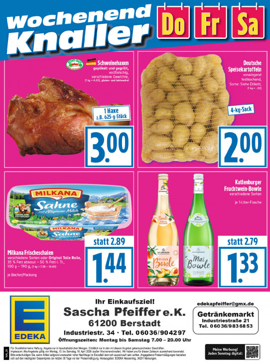Bitte beachten Sie, dass dieser Text automatisch generiert wird und möglicherweise Fehler enthältenend woch Wij 4 Ile Kna \ . a" be 4 MW edi EB al Kuna ss A a mt wi Da wv rs ea LA N nme Bi nt MU cu ET u Is wu zoe aren a tu At ! ait mu Mai u N & ir Al F * „ # net TE iv a VAN # N nl \ m i 2 a mi l £ Ad, PES u EN | d A er aline À ÉD UE Al ER EN ole Mai ‘8 f ee er En Av. fo statt 2.89 | statt 2.79 ER ensure x a Bowle be Lo” 18 Ihr Einkaufsziel! [email protected] Sascha Pfeiffer e.K. Getränkemarkt Industriestraße 21 61200 Berstadt Tel. 060 36/983 68 53 Industriestr. 34 - Tel. 06036/904297 Öffnungszeiten: Montag bis Samstag 7.00 - 20.00 Uhr Für Druckfehler keine Haftung. Abgabe nur in haushaltsüblchen Mengen. Erhältich nur in den mit diesem Angebot gekennzeichneten Geschäften. Impressum: AlleAngebote gültig von Montag, 13. bs Samstag, 18. Aprl 2026 (außer Wochenandknaller). Wir haben uns für diesen Zeitraum ausreichend bavorratet. Meine Werbung! Bitte entschuldigen Sie, wenn Artikel aufgrund unerwartet hoher Nachfrage im Einzelfall dennoch ausversauft sein sollten. Angegebene Preisermäßigungen beziehen Jeden Sonntag digital: B sich auf den niedrigster Gesamtpreis der letzten 30 Tage vor der Preisermäßgurg. Herausgeber: EDEKA Hessenring, 34201 Melsungen.