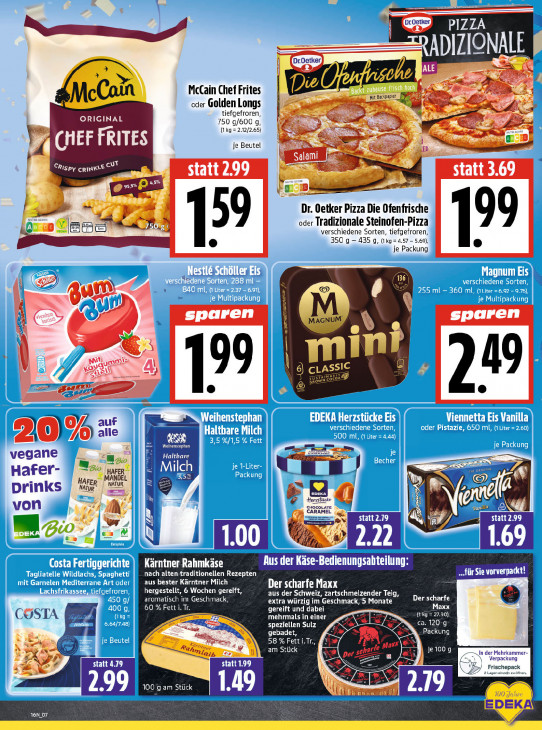 Bitte beachten Sie, dass dieser Text automatisch generiert wird und möglicherweise Fehler enthält= en = VAN » ADIZIONALE 2 = gr McCain Chef Frites De U Be McCain Fr ze Mit mo > cder Golden Longs Pa ORIGINAL tiefgefroren, er 750 9/600 9, er, 2 (1kg = 2.12/2.65) je Beutel NS En 7 CHEF FRITES Salami GI statt 299 Eu | statt 3.69 | f E [ Dr. Oetker Pizza Die Ofenfrische Ex: oder Tradizionale Steinofen-Pizza 9 PA verschiedene Sorten, tiefgefroren, 350 g - 435 g, (1ko = 4.57 - 5.69), je Packung AST EEL ER J NS lu it 8 > } N h Im Hi ar ll ij „ I sparen I paren | (l &: in 4 LL ou Iv Ks el) 72 4 A CLASS! J & auf EDEKA Her: 11114. (4 JEU LL SALE alle Pist 210% Fi En 1 LATE A un vegane zi Haltbare SS = Hafer- HAF ER N ©) Drinks | Wi ve LYS A u af 4 von us CHOCOLATE \ 2) Ni ( N statt 2.99 #0) 7 zn Sn IAE a) 1.69 Kärntner Rahmkäse Aus der Käse-Bedienungsabteilung: te Losta | BETA LTE a dl Lelei ti aus bester Kärntner Milch nach altentraditionellen Rezepten Ei shaken a Der scharfe Maxx hergestellt, 6 Wochen gereift, aus der Schweiz, zartschmelzender Teig, Der scharfe aromatisch im Geschmack, extra würzig im Geschmack, 5 ne Maxx gereift und dabei (kg = 27.90), COSTA E 60 % Fett Er mehrmals in einer ca. 120-g- za N EAN Packung * gebadet, ae I $ ria, 2 Eg am Stück 58% Fetti.Tr, je 100 g je Ami. u al In der Mehrkammer- Verpackung statt 4.19 statt 199 Du ischepack Z = \ 27 2.99 100 g am Stück 1.49 (| Gi NL) 100 Jade EDEKA 16N_07
