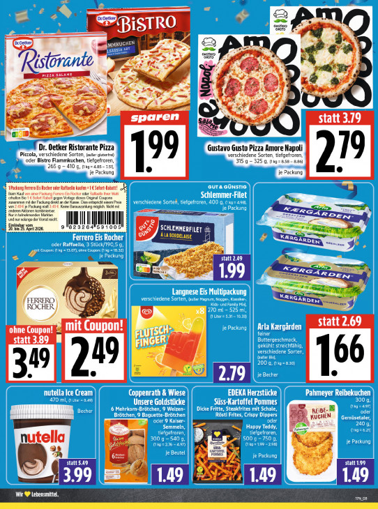 Bitte beachten Sie, dass dieser Text automatisch generiert wird und möglicherweise Fehler enthältES Ai m eo BiST | REN LES ILSÄSSER ART am Crono FE 5 % Gustavo a an Gusto (5: Toranie ; A =; an 41 ll | 2 ar N 4 a De ef bd oe pes Rv len 3 Fe eo en & paren statt 3.79 er SL ® 70 a f Dr. Oetker Ristorante Pizza Gustavo Gusto Pizza Amore Napoli Piccola, verschiedene Sorten, (außer glutenfrei) verschiedene Sorten, tiefgefroren 5 oder Bistro Flammkuchen, tiefgefroren y 315 q - 325 g, (1kg = 8.58 - 8.86) 265 g - 410 g, (Ikg=4.85- 7.51), je Packung je Packung ee 1 À 1Padurg Ferrero Eis Rocher oder Raffaello kaufen = 1 € Sofort-Rabatt! B Beim Kauf von einer Packurg Ferrero Eis Rocher oder Raffaello Ihrer Wahl Ws j 1 zusammen mit der Packung direkt an der Kasse. Dies entspricht einem Preis erhalten Sie 1 € Sofort Rabatt gegon Vorlage dieses Original Coupons wa 3 von 2 49€ je Packung statt 3.49 €. Keine Barauszahlung möglich. Nicht mi ee ı j 1 anderen Aktionen kumbinierbar. KER = : tun Nur in teilnehmenden Märkten ee er — RDEN } } jd nur solange der Vorrat reicht. Mil) II =: A0. bis 2. “pri 2026. ı Ein! 264 5910 | (A RE el SCHLEMMERFILET LA BORDELAISE ETT LD ng, LE rero Eis | Rocher GARDEN Sesaizen Si 4 D NET BON statt 2.49 PAP} Un 2 XX ie LE > à, ai 5 199 277 D LIT $ DN É FERRERO On KÆRG RDEN ROCHER NSESAUZEN statt 2.69 ohne Coupon! < ALT H ) B CLCITETTELE 1) statt 3.89 NGE! : + ©) 8 iutella Ice Lream “du all IE & Wiese ÉDERA Herzstucke Á eyer REIDEKLICHEN 10 IC 11e (= USS-Nartoifel F oMmmMmes ec li Aula de REIBE- BCE nes KUCHEI zE LE mee zh LION ES nutella Zita Her as PEN KARTOFFEL POMMES [1 ei statt 5.49 # “À statt 1.99 ETS SEP ev ER LATE nt Le 1.49 — Wir Lebensmitt 17N_08