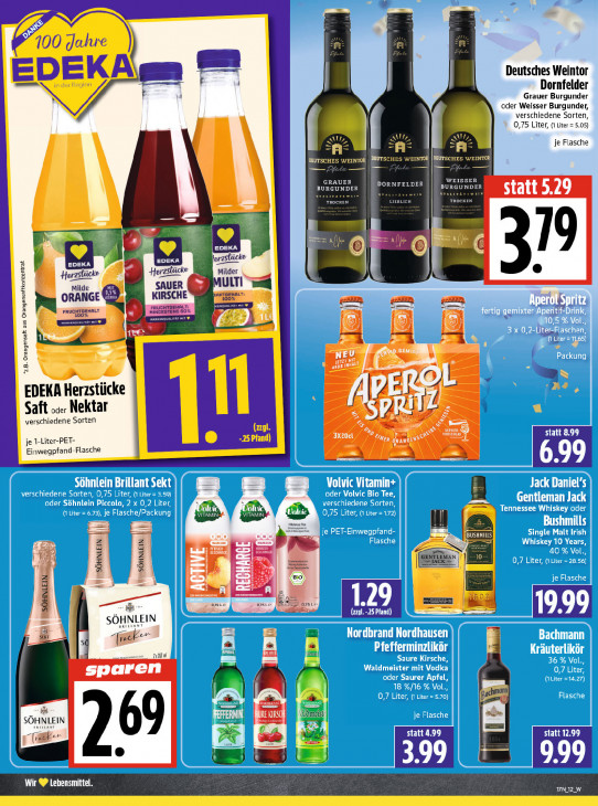Bitte beachten Sie, dass dieser Text automatisch generiert wird und möglicherweise Fehler enthältEN KS Se 100 Jahre —— - Deutsches Weintor EDEKA en Al Dornfelder A A Grauer Burgunder oder Weisser Burgunder, verschiedene Sorten, 0,75 Liter, (1 Liter = 5.05) SU = QUZ NU je Flasche DEvrsc: Ku Es: 'EINTOR | DEUTSC BAL GRAUER DORNFELDER WEISSER PER BURGUNDER EEE Ban statt 5.29 ET PO DOI u 7 u E Ee Fe. € @ EDEKA orzsticke PS Horzslücke Milder Horzslücke SAUER Biet UT ORANGE IRSCHE arten 8 velig r FRUCHTGEHALT ee EE à "z.B. Orangensaft aus Orangensaftkonzentrat 1 hi EDEKA Herzstücke 5 pÀ Saft ... Nektar 5 verschiedene Sorten (GTR 5 at) — ® -25 Pfand) 3x20€ / 7 WATT CO EN statt 8.99 je 1-Liter-PET- Er Einwegpfand-Flasche a à | 6.99 DIU Vi culs \ Jack Daniel S dl Gentleman Jack > lands ib He DUS MOULES DOE ‚vn A std Js ES GENTLEMAN engin va ane ER JAC SÖHNLEIN BO PO = EE 1.29 ee (CRIE) ers —— SOHNLEIN SEK I zeer = “w prabrai ij Norü LE IH 19 a zl d Sastre sparen | | | md ann Alle + puchm ja Wa Almen Ken SOHNLEIN | a print 3e er 4.99 statt 12.99 Tel en ww EX 9.99 Wir ® Lehensmittel. NZ W