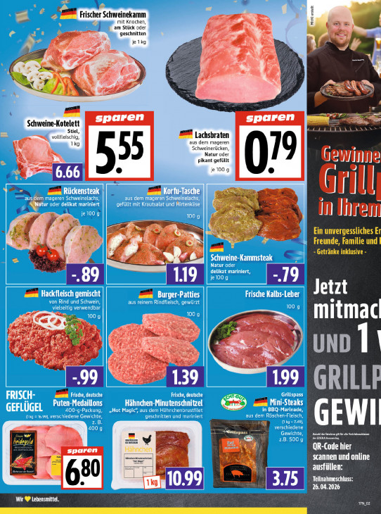 Bitte beachten Sie, dass dieser Text automatisch generiert wird und möglicherweise Fehler enthältÀ Im Frischer Schweinekamm EA mit Knochen, am Stück oder LS k= & RE] geschnitten je 1 kg = Zu u fe — gr Fan + = one : a Fr = = EN à ns DS) À Schweine-Kotelett sparen sparen Stiel, WEE ee —_ = vollfleischig, BR | achsbraten 1kg aus dem mageren 7 zu Schweinerücken, Natur oder Hr > pikant gefüllt Le = Sn je 100g & \Or Tu-Iasche m | + ensteak | Dj = in len Ein unvergessliches E ee Pr ; Freunde, Familie und - Getränke inklusive - Al olet Nr € Er] ent dd Jetzt EEP Ld te A mitmac De EE zh <> 2 Su Li: 2 1 Le Ke MTN & EL u Ri A vs 1.39 GRILLE BU US UE RS rillspass Futen-N dik If: FE vl tzel ho... ze] Sd rot Mag u Fr D AL Emil uurs de CT EEE N stes Cu er Sg sparen scannen und online EINER 60 Teilnahmeschluss: in 10.99) LATE] Wir Lebensmittel. LR