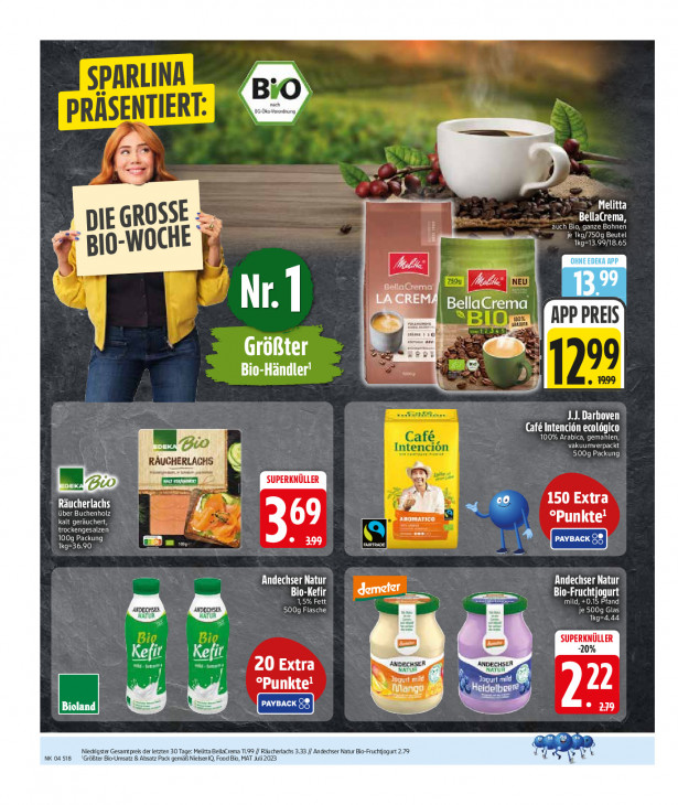Bitte beachten Sie, dass dieser Text automatisch generiert wird und möglicherweise Fehler enthältBiO 2 = Melitta BellaCrema, ROSSE auch Bio, ganze Bohnen DIEG je kg/750g Beutel 1kg=13.99/18.65 BIO-W OCHE En BellaCrema Nr. 1 EREMZ BallaCrema APP PREIS Free ma = el TL TS Bio-Händler' J.J. Darboven Café Intención ecológico iT si 100% Arabica, gemahlen, Bio NEIN taX 4 AK sl 500g Packung Fou. nz À ET ren 150 Extra Räucherlachs EET dk TE °Punkte! kalt geräuchert, trockengesalzen | Q = A 1kg=36.90 1009 Packung Ear Ei PAYBACK 38 Andechser Natur Andechser Natur Bio-Kefir CELLES CAT TTTgG 1,5% Fett. mild, +0.15 Pfand 500g Flasche je 500g Glas © rer ER ER RU led RU a 7” 20 Extra ANDECHSER NATUR ANDECHSER narun ALICE Wango Bioland Le Nick er Gesamtpreis der letzten 30 Tage telitta BellaCrema 1.99 // Räucherlach 1! Andechser Natur Bio-Fruchtjogurt 2.79 NK 04 SIB "Größter Bio-Umsatz & Absatz Pack gemäß NielsenIQ, Food Blo, MAT li 2023 \