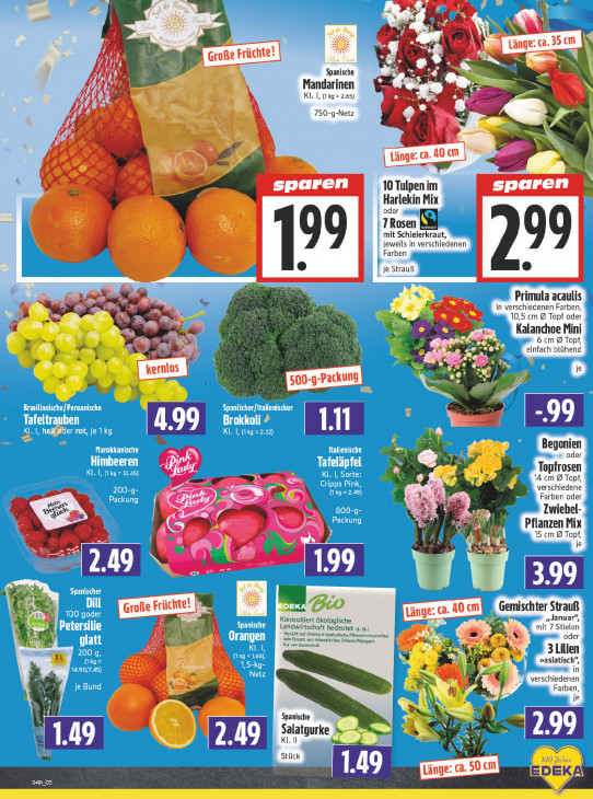 Bitte beachten Sie, dass dieser Text automatisch generiert wird und möglicherweise Fehler enthältne >. gf RA Li \ = + Lange: a. 35m dl Große Früchte! ss e = cm ls Spanische "y M M [2 N N Mandarinen KL. |, kg = 2.65) « HA 750-g-Netz +° LS 2 Bu sparen 10 Tulpen im sparen Harlekin Mix oder TRosen RM mit Schleierkraut, jeweils in verschiedenen arben bee 2 je Strauß En Primula acaulis Kad >" in verschiedenen Farben, ! EN 10,5 cm @ Topf oder Kalanchoe Mini 6 cm @ Topf, Im einfach blühend B = Pi Je 500-9 Packung hen‘ 4 / Begonien oder Topfrosen 14. cm @ Topf, verschiedene nn Farben oder Nor ED) = Zwiebel- Pflanzen Mix PE 5 te 15 cm @ Topf, | dé je ] > Zr 399 à Fe ve | ; r Strauß LK Aire: 6.100 Länge: ca 0 cm 7 Gemischte roße Früchte! Kontrolliert ökologische Landwirtschaft bedeutet u. a: mit 7 Stielen „Januar”, A N | Verzicht auf chemisch-synthetische Pflanzenschutzmittel oder 3 Nib À + ken Esa vo) mieralschen Stickstoffdüngern, ox REC > 3 Lilien XL »asiatisch”, In oe jo Ce ea La verschiedenen 7 ek LS € \ “ Farben, Í W je Su Spanische ES Lg Salatgurke Nh Stück WO Jake 1.49 EDEKA O4N.05