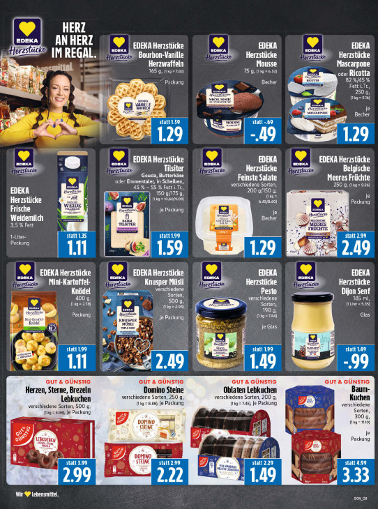 Bitte beachten Sie, dass dieser Text automatisch generiert wird und möglicherweise Fehler enthältHERZ AN HERZ MTL or EDEKA | À EDEKA 4 orzstück U EDEKA EDE IMREGAL fe Bourbon-Vanille [el Herzstücke art 4 | Herzwaffeln Mousse Mascarpone ET " 165 g, (1kg=7.82) 75 g, (kg =6.53) oder Ricotta Fr Ps j ei) ze Ine) Becher 82%/45 % =. en ee Vs eben Fett i.Tr., k Je) 250 q, BOURBON Vs ten MOU (kg= 516) ©] B VANILLE Jee FR DE IE KN u va Becher FB ft mm LE CS Mi SE statt UL 74 erste ou ir #7 | 1.29 -.19 1.29 2 a pc hd 30] EDEKA Herzstücke DEKA CL Li sl au Hı Tilsiter Herzstiücke fl al Gouda, Butterkäse oder Emmentaler, in Scheiben, Feinste Salate Meeres Früchte CS % Fetti.Tr, verschiedene Sorten, 250 9, (1ka = 9.96) EDEKA ‚rzstücke | en 150 9/175 g, 200 g/150 g, #4. Pl ‘à {1 kg = 10.60/9.09) (ne je Herzstücke WEIDE HE DN 6.45/8.60) Packung Frische Herzsticke N Sj je Packung "ug herzstücke Weidemilch RAHM a BELGISCHE 3,5 % Fett TILSITER MEERES FRÜCHTE UEC statt 1.35 statt 1.99 Are Packung (& AL Ro “| 1.59 1.29 2.19 | EDEKA Herzstiide | ® | EDEkAHerzstiche | DE! EDEKA (| EDEKA alt CLS [Te LA ETS Knusper Müsli Herzstücke Herzs Herzstücke ht verschiedene Pesto = Sorten, verschiedene u Dijon Senf (kg = 278) 400 g, 500 g, (1 Liter = 5.35) EU EDEKA EDEKA ij kg = 4.98) Sorten, stink WS IP Herzstäcke 190 9, Glas Mi del Ü Packung je LA ng #4 7.84) > 4 KNUSPER MÜSLI ke, ) (un l'a) DA reuecuoc R je Glas Ay N a he PR Host Buonsen statt 1.99 H © ae ICL) is statt 1.49 gers TE V7 R IN Al NV, 1.49 -99 GUT & GÜNSTIG GUT & GÜNSTIG GUT & GÜNSTIG GUT & GÜNSTIG Domino Steine Oblaten Lebkuchen Baum- Herzen, Sterne, Brezeln Lebkuchen verschiedene Sorten, 250 g, verschiedene Sorten, 200 g, 5 Kuchen verschiedene Sorten, 500 g, (1 kg = 8.88), je Packung Gkg=7.45) je Packung verschiedene (1kg=5.98), je Packung Pr Sorten, 300 9, D DOMINO = a (Ikg= 1110) NS ge je R I LEBKUCHEN >) Fe 7 Packung Henze > tj RS VS ee Re pomio_ El statt 3.99 statt 2.99 statt 2.29 statt 4.99 = STEINE | FON NünyBengen | ORLITEH LEBKucheN N 2.99 2.22 IN EN EKE) Wir ® Lebensmittel. 50N_08