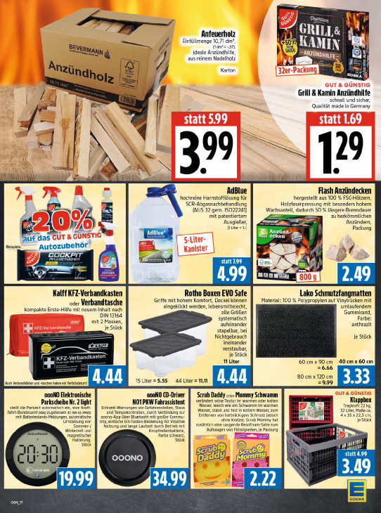 Bitte beachten Sie, dass dieser Text automatisch generiert wird und möglicherweise Fehler enthält[El Fi Anfeuerholz A LE y ] Einfüllmenge 10,71 dm?, +50: | [| VE (1 dm? = -37), RE KAMI A des # ideale Anzündhilfe, DAUER RMANN à # aus reinem Nadelholz LE wt. Le un à CUP Anz ESc Karton ST ae 300% Le Ündhoiz en LA LO Cisse, Grill & Kamin Anzündhilfe ll = schnell und sicher, Qualität made in Germany rn =>— _ N Fi Hil | \ \ 99 eN 29 Le U 13 ik 1 u si AdBlue Hash Anzündecken hochreine Harnstofflösung für hergestellt aus 100 % FSC-Hölzern, SCR-Abgasnachbehandlung Holzfaserpressung mit besonders hohem (AUS 32 gem. 15022241) Wachsanteil, dadurch 50 % längere Brenndauer mit patentiertem 24 zu herkômmlichen Ausgießer, GZ gi Z Anzündern, (liter =1.) De € 0 7 - Packung Nn AdBlue* 5 <> , auf das erh Beispiele = A Autozubehör’ Ü A COCKPIT A ind OCT] ve ER h EE Asa pare Pen IE ET BE Dn 2.49 Kalff KFZ-Verbandkasten Rotho Boxen EVO Safe Lako Schmutzfangmatten oder Verbandtasche Griffe mit hohem Komfort, Deckel können Material: 100 % Polypropylen auf Vinylrücken mit eingeklickt werden, lebensmittelecht, umlaufendem kompakte Erste-Hilfe mit neuem Inhalt nach alle Größen Gummirand, DIN 13164 Farbe: mit 2 Masken, systematisch je Stück aufeinander anthrazit stapelbar, bei Nichtgebrauch je Stück ineinander 1 1 FE KALE) © verstaubar, di Dn je Stück LG Z-Verband FETE En 11 Liter 60 cm x 90 cm 40 cm x 60 cm + = 6.66 80 cm x 120 cm 4.44 15 Liter = 5.55 44 Liter = 11.11 Auch Verbandkästen und -taschen haben ein Verfallsdatum! NL = 9,99 3.33 oooN0 Elektronische oooN0 CO-Driver verändert seine Textur im warmen oder kalten Scrub Daddy oaer Mommy Schwamm Parkscheibe Nr. 2 light N01 PKW Fahrassistent Wasser, weich wie ein Schwamm im warmen Klappbox stellt die Parkzeit automatisch ein, vom Kraft- Echtzeit-Warnungen vor Gefahrenstellen, Staus Tragkraft 22 kg, fahrt-Bundesamt (kga) zugelassen |E1 10R-06 9980) und Tempokontrollen, durch Verbindung zur Wasser, stabil und fest in Kaltem Wasser, zum Er 32 Liter, Maße ca. mit Batteriestands-Meldungen, automatische ooono-App über Bluetooth mit großer Commu- Entfernen von hartnäckigem Schmutz jedoch 4x 35 x 22,5 cm, Umstellung von nity, einfache Ein-Tasten-Bedienung für intuitive ohne Kratzer, Scrub Mommy hat je Stück Sommer-/ Nutzung und lange Laufzeit durch Betrieb mit zusätzlich eine saugende ResoFnam-Seite zum nkunftszei Winterzeit und Knopfzellenbatterie, Aufseugen von Flüssigkeiten, je Packung er i Û magnetischer Farbe schwarz, 00 | shag Hi Halterung, Stück N EM Stück merge. UE Tl a ri M NS N Va GT El d LV Ju OOONO If Ny, PJ 19.99 34.99 Ee 2.22 COR