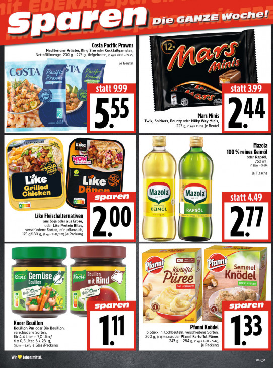 Bitte beachten Sie, dass dieser Text automatisch generiert wird und möglicherweise Fehler enthältne’ ad GANZ E Wo | Ce Le Le LES ess Costa Pacific Prawns Mediterrane Kräuter, King Size oder Cocktailgarnelen, dx Nettofüllmenge, 200 g - 275 g, tiefgefroren, (1kg = 20.18 - 27.75) je Beutel a (AS DD > TA COSTA 14 SE = 2 \ ai 7 à Pr pe mi Ne 4 à ass + LS do Aa — Mars Minis a Twix, Snickers, Bounty oder Milky Way Minis, 227 g, (ikg=10.75), je Beutel En sé A Zune Se Mazola FS ax, 100 % reines Keimöl ke a Ar oder Rapsöl, 750 ml, x SUN À (N liter = 3.69) “as rec en je Flasche RC Like (> le 0.1702) Mazola Kon © KEIMÖL | RAPSÔL Like Fleischalternativen aus Soja oder aus Erbse, oder Like Protein Bites, 1 verschiedene Sorten, rein pflanzlich, 175 g/180 g, (ixg=n.43/n.n), je Packung men a == D BEE Dear Pi) vo ann! pe Pfanm Semmel =. Bouillon F Kurtoffel ee : tn Gemüse 12 Kn del LEET % mit Rind @ | En a A nl lon Zuuoten Zutat EE SEE... 4 a VEGA > Knorr Bouillon Bouillon Pur oder Bio Bouillon, 5 Pfanni Knödel verschiedene Sorten, 6 Stück in Kochbeuteln, verschiedene Sorten, für 4,4 Liter - 7,0 Liter/ 200 g, (1kg = 6.65) oder Pfanni Kartoffel Püree, 33 6 x O,5 Liter, 6 x 28 g, 243 g - 284 g, (kg = 4.68 - 5.47), (Liter = 6.61), je Glas /Packung gd je Packung Wir ® Lebensmittel. O6N18
