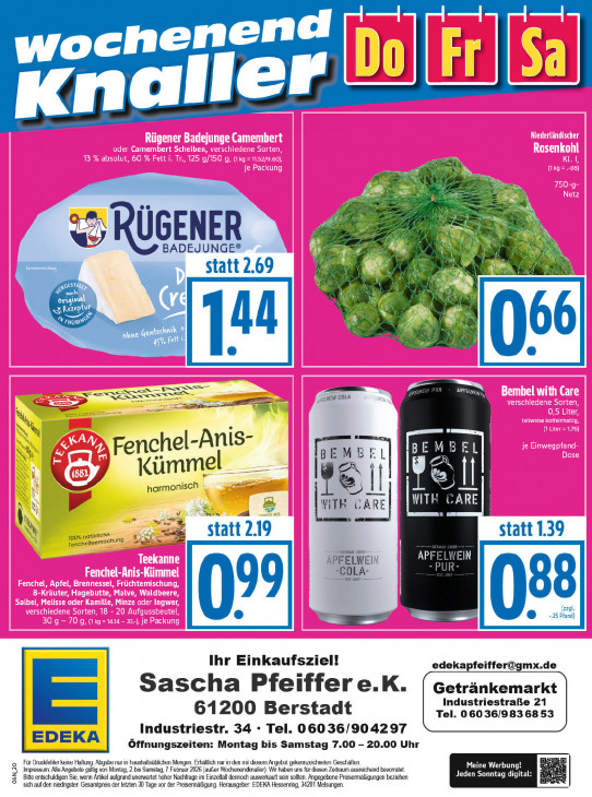 Bitte beachten Sie, dass dieser Text automatisch generiert wird und möglicherweise Fehler enthälte henend woc Wi) LI 1 ! ad aller Kn RE en = AN © UGENER BADEJUNGE® > Statt 2.69 ES ro 48 « F4 TU LL QU ur wii THÜRS € N ING technik nn er Ne e= Is Se =S ER = ss el COLA en ee à A hu \E RE Fenchel-Anis- B E N f B E PR re == À Kümmet X, | 5 I harmonisch ll dn Fru | h! x | =. ITH GARE WITH CARE 100% natüriche statt 219 statt 1.39 Fencl nelteemsehung Eu 1 À PEELEN 2 En À 8 D -25 Pfand) (zzgl. Ihr Einkaufsziel! [email protected] Sascha Pfeiffer e.K. Getränkemarkt Industriestraße 21 61200 Berstadt Tel. 060 36/983 68 53 | Industriestr. 34 - Tel. 06036/904297 | Öffnungszeiten: Montag bis Samstag 7.00 - 20.00 Uhr Für Druckfehler keine Haflung. Abgabe nur in haushallsübfichen Mengen. Erhältlich nur in den mit diesem Angebol gekennzeichnelen Geschäften Meine Werbun E Impressum: Alle Angebote gültig von Montag, 2.bis Samstag, 7 Februar 2026 (außer Wochenendknaller). Wir haben uns für diesen Zeitraum ausreichend bevorratet Jeden Sonntag O6N 20 Bitte entschuldigen Sie, wenn Artikel aufgrund unerwartet hoher Nachfrage im Einzelfall dennoch ausverkauft sein sollten. Angegebene Preisermäßigungen beziehen sich auf den niedrigsten Gesamtpreis der letzten 30 Tage vor der Preisermäßigurg. Herausgeber: EDEKA Hessenring, 34201 Melsungen.