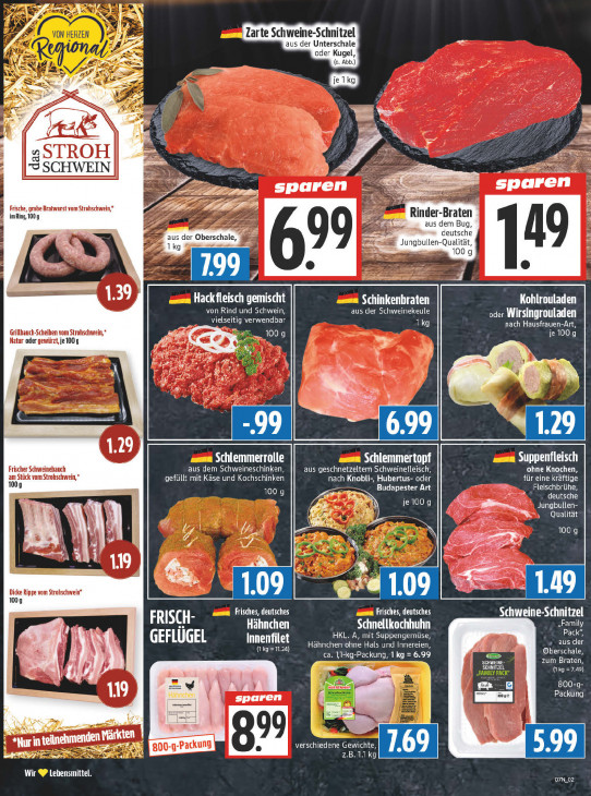 Bitte beachten Sie, dass dieser Text automatisch generiert wird und möglicherweise Fehler enthältLg rd ei LL NAS pt À & Zarte Schweine-Schnitzel aus der Unterschale oder Kugel, (o. Abb.) a, ee À 2 I ren 7 ek en Mi + 4STROH "5 SCHWEIN Fo ren TNT ne sp a jeu: Frische, grohe Bratwurst vom Strahschwein, “ im Ring, 1009 Rinder-Braten ve aus dem Bug, Sn, deutsche aus der Of berschale, ment nn alität, 1kg HUE QU a 100 g Schinkenbraten Kohlrouladen Hackfleisch gemischt von Rind und Schwein, aus der Schweinekeule oder Wirsingrouladen vielseitig verwendbar 1kg nach Hausfrauen-Art, Grillbauch-Scheiben vom Strohschwein,* je 100g Natur oder gewürzt, je 100g ME N L LA ke he k — 2 Schlemmerrolle Schlemmertopf Suppenfleisch Frischer Schweinebauch aus dem Schweineschinken, aus geschnetzeltem Schweinefleisch, ohne Knochen, am Stück vom Strohschwein,* gefüllt mit Käse und Kochschinken nach Knobli-, Hubertus- oder für eine kräftige g Budapester Art Ee Fleischbrühe 100 g GE > deutsche a je 100 g Jungbullen- « 1 Qualität | \ | 7 Les À al Lors 7 È oo El es 19 Le Dicke Rippe vom Strohschwein* 100g SE FRISCH- Frisches, deutsches Frisches, deutsches Schweine-Schnitzel Hähnchen Schnellkochhuhn All HKL. A, mit Suppengemüse, Pack 8 (ALTER Innenfilet aus der (1 kg =11.24) Hähnchen ohne Hals und Innereien, A Oberschale, 99 zum Braten, p me ca. OE LC = 6. = T ROUES UE) 800-g- 119 Packung sparen hi (A 2 x 99 \ NU ur in teilnehmende verschiedene Gewichte, LS SES z.B.1.l kg Wir [TISCH O7N_02