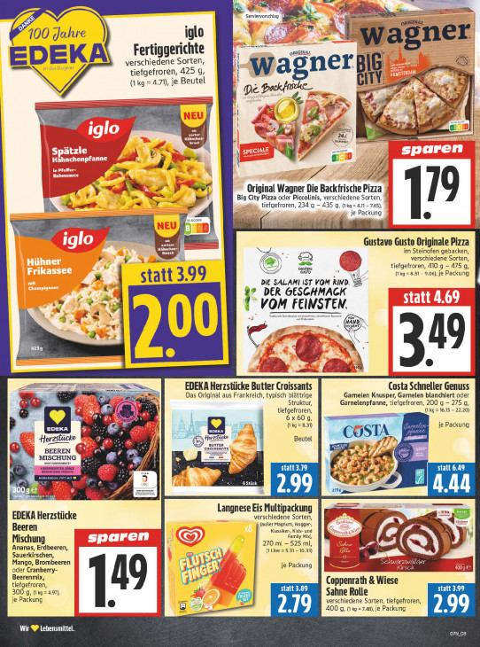 Bitte beachten Sie, dass dieser Text automatisch generiert wird und möglicherweise Fehler enthältWe u EEE “ps. Servervorschlag- = vr ORIGINAL LS 100 Jahre iglo r en nen zu -W. agne Fertiggerichte omt EDEKA verschiedene Sorten, erg 6 tiefgefroren, 425 g, wagn rh (kg = 4.71), je Beutel | CITY Èe De ? >| “>, + dis | “> zarter ce — a END 7 pur TA 2 V4 AUS SJ VE Original Wagner Die Backfrische Pizza 4 ee Big City Pizza oder Piccolinis, verschiedene Sorten, mt „ tiefgefroren, 234 q — 435 q, (1kq = 4.1 - 7.65), Eh Kees je Packung ai-SCORE 179 Lis 8 Ni Gustavo Gusto Originale Pizza Hähnchen LE im Steinofen gebacken, =) verschiedene Sorten tiefgefroren, 410 g - 475 g, = Gustavo (kg = 8.51- 0.06), je Packung statt 3.99 DIE SALAMI IST VOM RIND, wo DER GESCHMACK a f VOM FEINSTEN. Coran A GD = ; 19 rer x je pe eet EP FE is EDEKA Herzstücke Butter Croissants Costa Schneller Genuss 3 Das Original aus Frankreich, typisch blättrige Gamelen Knusper, Garnelen blanchiert oder Struktur, Garnelenpfanne, tiefgefroren, 200 q - 275 q, ej tiefgefroren, {kg = 16.15 — 22.20) CA GA nch 6x 60 g, à 1 (kg = 8.31) je Packung "| a W Herzslücke Herzslücke | Beutel lei TN croissants UTTER BEEREN MISCHUNG ‘omne zucKERzusATze e EBEERENSORTEN statt 3.79 3 ÿ, EE) AET ARONATISCHE FAÜCHTE Er gs 6 Stück GE SS pe XL) 2151 2m 4.44 re) Langnese Eis Multipackung EDEKA Herzstücke verschiedene Sorten, Beeren (außer Magnum, Nogger- Klassiker-, Kids- und Ih Mischung Family Mix), Ananas, Erdbeeren, 270 ml 525 ml, Sauerkirschen, (1 Liter = 5.31 - 10.33) Mango, Brombeeren Ce oder Cranberry- je Packung Beerenmix, tiefgefroren Coppenrath & Wiese 300 g, (1 ka = 4.97), zt statt 3.89 Sahne Rolle statt 3.99 je Packung 149 verschiedene Sorten, tiefgefroren, 2.19 400 g, (1 ko =7.48), je Packung 2.99 Wir ® Lebensmittel, O7N_O8