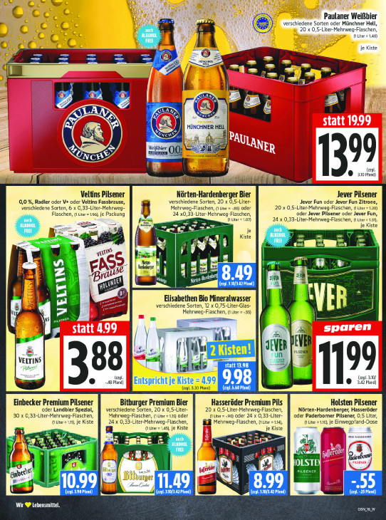 Bitte beachten Sie, dass dieser Text automatisch generiert wird und möglicherweise Fehler enthält€ u Paulaner Weißbier verschiedene Sorten oder Münchner Hell, auch 8 20 x 0,5-Liter-Mehrweg-Flaschen, < ALKOH (1 Liter = 1.40) FREI € Li A je Kiste peu] = —— P= == Zu un MÜNCHNER Kd ÉR = I si En | ‚ 2 SE ! ML. | il he | (ES s LÉ | OO = LS i MÜNCHNER HELL & N Nc# G FE Weißbier — _ Nc# 99 (zzgl. 3:10 Pfand) Veltins Pilsener Nörten-Hardenberger Bier Jever Pilsener verschiedene Sorten, 20 x 0,5-Liter- 0,0 %, Radler oder V+ oder Veltins Fassbrause, Jever Fun oder Jever Fun Zitrone, verschiedene Sorten, 6 x 0,33-Liter-Mehrweg- Mehrweg-Flaschen, (1 Lite: 5) oder 20 x 0,5-Liter-Mehrweg-Flaschen, (1 Liter = 1.20) Flaschen, (1 Liter = 196), je Packung 24 ze, 33-Liter- Mehrweg aschen, oder Jever Pilsener oder Jever Fun, EN (1 Liter = 1.07) 24 x 0,33-Liter-Mehrweg-Flaschen, (1 Liter = 1.51), ALKOHOL y je Kiste FREI TE LE je auch Kiste ALKOHOL EN FRE == vers es UF = cup. NP Hardnerer IS EE dE RU ML ML 8.49 ER m) noet (zzol.3-10/3.42 Pfand) run 1 Elisabethen Bio Mineralwasser 5 verschiedene Sorten, 12 x 0,75-Liter-Glas- R eu Mehrweg-Flaschen, a Liter = -55) ë E B GT a u rr IN ? cie” JEVER PILSEN run VELTINS a Ho ul m 13.98 99 88 (zzol. (zgl. 310/ 3 ® -.48 Pfand) Entsprichtf jeKiste=4.99 9.98 | © 34 Ptand) (zzgl. 3.30 Pfand) (zzgl.6.60 Pfand) Einbecker Premium Pilsener Bitburger Premium Bier Hasseröder Premium Pils Holsten Pilsener oder Landbier Spezial, verschiedene Sorten, 20 x 0,5-Liter- 20 x 0,5-Liter-Mehrweg-Flaschen, Nörten-Hardenberger, Hasseröder (1 Liter = 90) oder 24 x 0,33-Liter- oder Paderborner Pilsener, 0,5 Liter, 30 x 0,33-Liter-Mehrweg-Flaschen, Mehrweg-Flaschen, (1 Liter = 1.15) oder (Liter = 1.11), je Kiste 24. x 0,33-Liter-Mehrweg-Flaschen ER Mehrweg-Flaschen, (Liter =1:14), (l Liter =110), je Einwegpfand-Dose (u) (1 Liter = 1.45), je Kiste je Kiste — cu ma SER A onnit 0 E 5 5 auch ALKOHOL kad ” N FREI se u D A4 NU Br Æ 8 j fégosbon \) OLSTE | % 00 il DIE CUT) goet! È bu Ir 10.99 | Sman Geir int hl 55 (zzgl.3.90 Pfand) (zzgl.310/3.42 Pfand) (a gl. 3.10/3.42 Pfand) (zzol. -25 Pfand) Wir ® Lebensmittel OBN 16