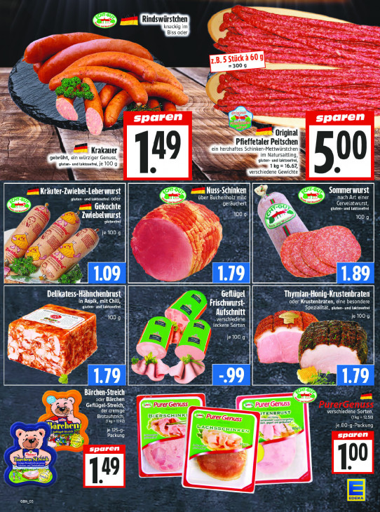 Bitte beachten Sie, dass dieser Text automatisch generiert wird und möglicherweise Fehler enthältUN Rindswürstchen VIG ee CAS PA RE knackig im 5 2 A ep Pr nii Biss oder Ee En ke D AS SN LE LG LEE 7 A en ed pe RE Tien SL me LE x « ey TE LS FAN es Es zB. 5 Stückà 600 Erz =300 9 I Sc N es 774 made, 72 a RAS ts gi: 1 BEE Ee 7 er NI à ” 7 Loue PE ae Ce N Er 2 Te à EAN AT ze ES Re a D ERP ea x 4 2 40 nal Ne x Zt = Ori: er ol sparen sparen = an > ame: I Original Pfieffetaler Peitschen zu Krakauer ein herzhaftes Schinken-Mettwürstchen = im Natursaitling, gebrüht, ein würziger Genuss, ÈS gluten- und laktosefrei, gluten- und laktosefrei, je 100 g 1kg 6.67, = verschiedene Gewichte à = Kräuter-Zwiebel-Leberwurst T-GON ET] Sommer wurst à über Buchenholz mild EC Ts gluten- und laktosefrei oder Cervelatwurst, Gekochte geräuchert GU = N S Á wa gluten- und laktosefrei Zwiebelwurst Den . 1009 100 g glutenfrei LE us da N à) oo.) C] a $ te S 1] \4 e I Pl al nc N a ee CETTE Thymian-Honig-Krustenbraten Ce ee TE oder Krustenbraten, eine besondere gluten- und laktosefrei RAR: Spezialität, gluten- und laktosefrei GD 100 g je 100 g Es verschiedene a = EEE hi a Ri je 100 g A hb HM >. ve > Bärchen-Streich oder Bärchen Geflügel-Streich, (==) Purer, Genuss) der cremige"” NB US, verschiedene Sorten Brotaufstrich, BIERSCHIN tag {kg = 12.50) (kg=1192) NT Purer Gens keit, gegart und geräucher A CH 109 ©) je 80-g-Packung je 25-9- Tamtesetei ge Sm = , LINKEN] Packung Creil re sparen se (Br CN (A Von ha Rekers sparen he | N EDEKA O8N_03