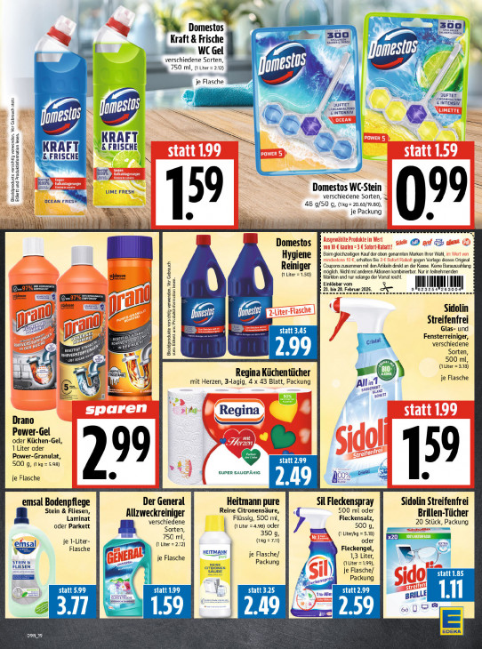 Bitte beachten Sie, dass dieser Text automatisch generiert wird und möglicherweise Fehler enthältu y si F u, ar 4 Dom estos 300) Ken K r a ft & Frische Fe Le WC Gel ie IA verschiedene Sorten UN) 4 Ar 750 ml, (1 liter = 2.12) A N } 1 - je Flasche | £ DUFTET. CANGANHALTEND DUFTET & INTENSIV fnmestos LANGANHALTEND £ INTENSIW à MALE @ © KRAFT ation lesen. KRAFT vk FRISCHE &,FRISCHE D Er LIME FRESH Domestos WC-Stein Biozidprodukte vorsichtig verwenden. Vor Gebrauch stet: Etikett und Produktinfe verschiedene Sorten, 48 9/50 g, (1kg= 20.63/19.80), 99 = je Packung Domestos © a B il Hygiene Beim gleichzeitigen Kauf der oben genannten Marken Ihrer Wahl erhalten Sie gegen Vorlage dioses Original brauch Reiniger möglich. Nicht mit anderen Aktionen kombinierbar. Nur in teilnehmenden Coupons zusammen mit den Artikeln direkt an der Kasse. Keine Barauszahlung po bhnson (1 Liter = 1,50) Märkten und nur solange der Vorrat reicht. Ei sbar vom Erb MR = 23. end AN 823254 MI] Te, 97 % m ne Sidolin ; DZ Ig fi Inmestos D : Streifenfrei qi al m statt 3.45 Glas- und [ SE RE) PR Fensterreiniger, HR RUES verschiedene CL TT De Sorten DATE BE maf 2.99 500 ml, 5 = emo) (Liter = 3.18) ERÜCISTÄNDE) N Regina Küchentücher sé je Flasche mit Herzen, 3-lagig, 4 x 43 Blatt, Packung in Ÿ 7 sAUBERK LANZ a 4 # SHUT = dr Regina Drano Power-Gel oder Küchen-Gel, 5 1 Liter oder Power-Granulat, 500 g, (kg = 5.98) statt 2.99 SUPER SAUGFÄHIG je Flasche 299 159 2.49 Àc en Rs emsal Bodenpflege Der General Heitmann pure Sil Fleckenspray Sidolin Streifenfrei Stein & Fliesen, Reine Citronensäure, 2 500 ml oder Laminat Allzweckreiniger Flüssig, 500 ml, Fleckensalz, Brillen-Tücher oder Parkett verschiedene 20 Stück, Packung Sorten, | (1 Liter = 4.98) oder 500 g, me EEn a 750 ml, 350 9, (1 Liter/kg = 5.18) x20 emsal je 1-Liter- {1 Liter = 2.12) (Ing = 7.11) oder 1 Flasche HEITMANI Fleckengel, je Flasche HEITMANN pure je Flasche/ 1,3 Liter, FLIESEN STEIN & Be EINE Packung (1 Liter =1.99) CITRONEN je Flasche/ a Packung statt 1.85 statt 5.99 statt 199 = 1. statt 3.25 statt 2.99 \ Be AN: BRILLE [Al ZEN Aa 1.59 pat) 2.59 De D9N 19